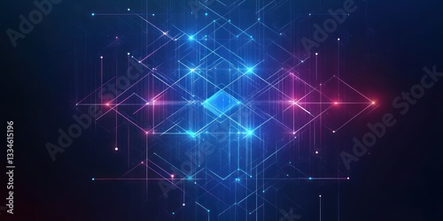 Futuristic Abstract Geometric Pattern with Glowing Cyan and Blue Lines and Cubes in Digital Art Style