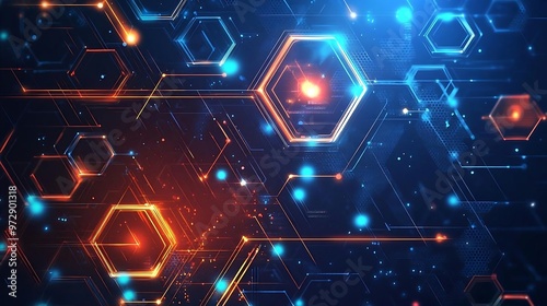 Futuristic Abstract Hexagon Pattern with Glowing Lines