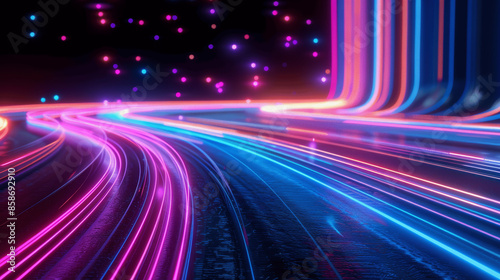 Futuristic Abstract Neon Background with Glowing Lines Curvy Digital Art Highway Speed Effect