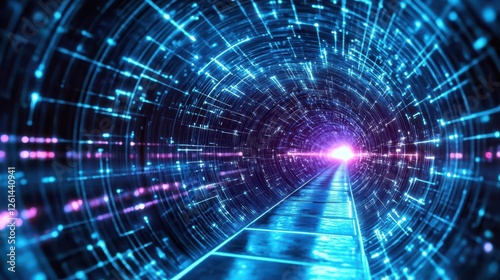 Futuristic Abstract Technology Background Featuring Neon Lines and Digital Networks for Big Data and AI Concepts