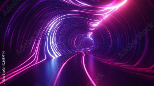 Futuristic Abstract Tunnel with Glowing Lines 360 vr 3d render panorama. 3D Illustration
