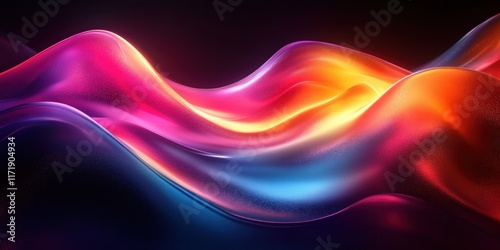 Futuristic Abstract Wave Glossy Iridescent Shape on Dark Background Digital Art
