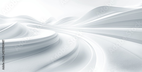 Futuristic Abstract White Background with Curved Lines and 3D Elements for Modern Technology