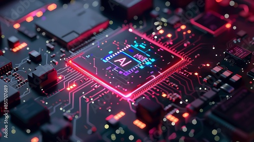 Futuristic AI Chip in a High-Tech Circuit Board with Neon Lights