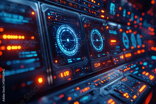 Futuristic AI Interface Terminal Display Cyber Technology Command Center Innovation Blue Orange