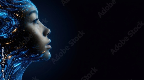 futuristic AI mind made of open-source code fragments, glowing blue matrix aesthetic