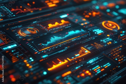 Futuristic AI-driven eCommerce Dashboard with Holographic Investment Charts and Neon Highlights