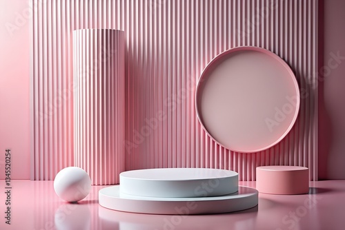Futuristic and abstract pink studio setting with a luxurious display podium and gradient lighting