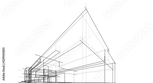 Futuristic Architectural Wireframe. Abstract Modern Building Design in Digital Sketch Style