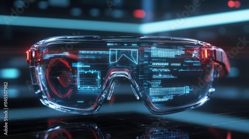 Futuristic Augmented Reality Glasses with Digital Display Technology Showcasing Advanced Data Graphics in a High-Tech Setting for Innovation and Design Concepts