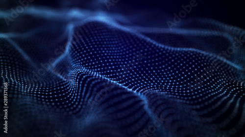 Futuristic background of points and lines with a dynamic wave. Big data. Abstract background 3d rendering. 4k.