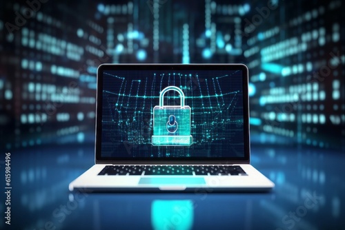 Futuristic background with a padlock as a symbol of internet security and personal data protection. AI generated