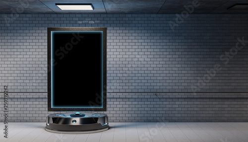 Futuristic billboard in dirty underground tube station mockup 3d rendering