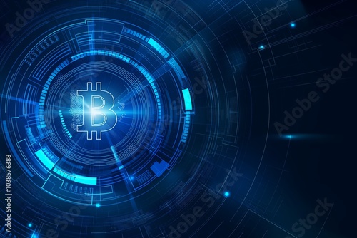Futuristic Bitcoin Technology Concept with Digital Circuitry in Blue Tones. Abstract Cryptocurrency Representation for Financial Use