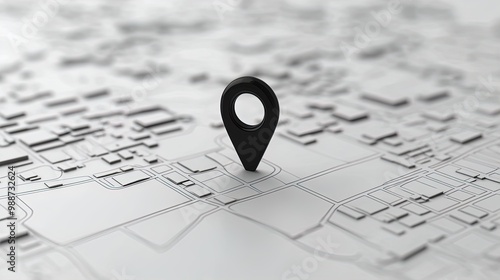 Futuristic Black Location Marker on Minimalist Map: A High-Tech Navigation Poster for Smart City Decor to Elevate Sports Interiors with Abstract Transport Routes