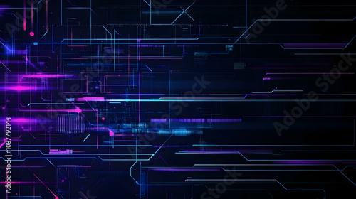 Futuristic blue abstract background featuring circuit board circles and various tech elements.