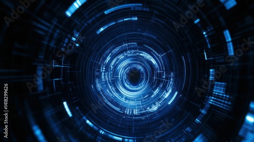 Futuristic blue digital tunnel with glowing lines in abstract cyberspace.