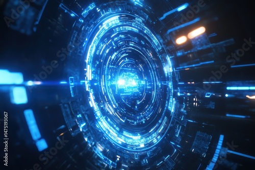 Futuristic Blue Holographic Interface with Cyberpunk Glow and Symmetry