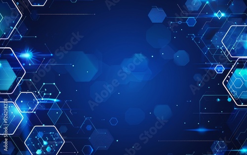Futuristic Blue Technology Background with Glowing Hexagons and Lights
