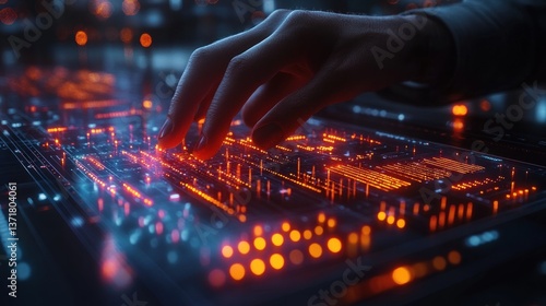 Futuristic Business Analytics Professional Analyzing Sales Data Economic Growth Financial Charts Holographic Interface