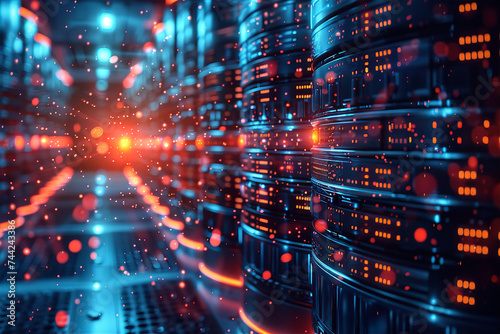Futuristic business background with neon running digits and information chain, representing technology, cyber security and dig data concept