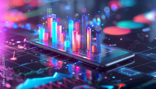 Futuristic Business Graph on Smartphone Screen with Digital Business Icons Background