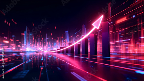 Futuristic Business Growth Chart with Light Effects