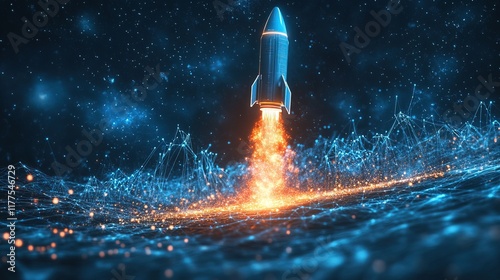 Futuristic Business Success Concept with Rocket Launch and Growth Graph