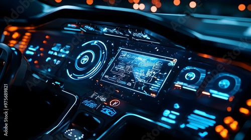 Futuristic Car Dashboard with Cutting Edge Digital Controls and Displays