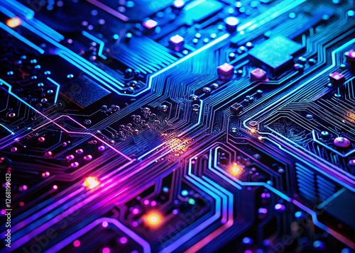 Futuristic Circuit Board: Glowing Blue & Purple Tech Background