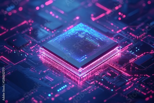 Futuristic Circuit Board with Digital Processor in Neon Colors