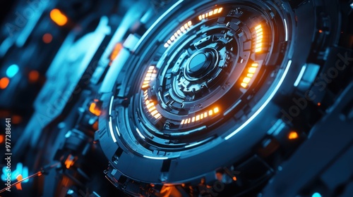 Futuristic circuit with glowing elements and intricate patterns, showcasing advanced technology and digital innovation.