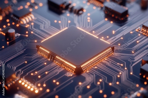 Futuristic Circuitry Illuminated Microchip Design with Metallic Textures in Tech Innovation - Advanced Electronics Concept and Secure Computing Infrastructure Promotion