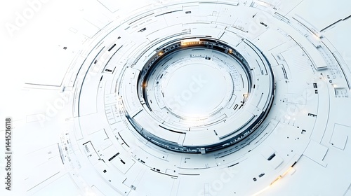 Futuristic Circular Technology Design in Minimalist Abstract Architecture Blueprint