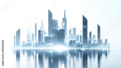 Futuristic City Skyline Under Misty Backdrop with Bold Architectural Silhouettes