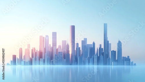 Futuristic city skyline with diverse highrise structures