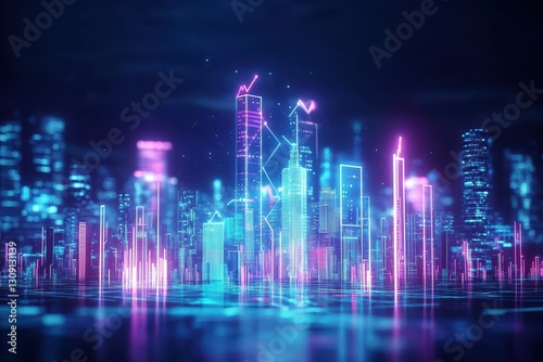 Futuristic Cityscape at Night with Vibrant Neon Lights Illuminating Modern Architecture Creating an Energetic and Dynamic Urban Atmosphere