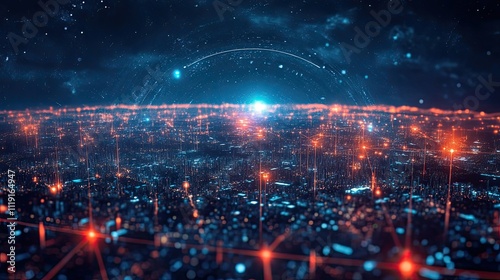 Futuristic Cityscape Illuminated With Digital Network Connections