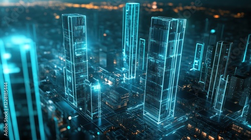 Futuristic Cityscape Illuminated With Neon Blue Lines