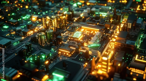 Futuristic Cityscape on a Circuit Board: A Digital Metropolis Glowing with Innovation
