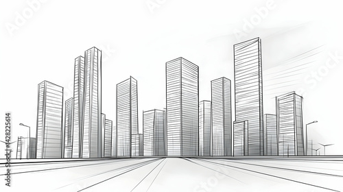 Futuristic Cityscape Outline with Skyscrapers and Open Streets