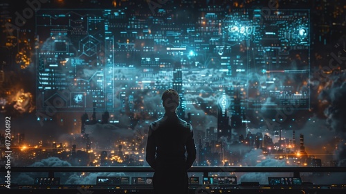Futuristic Cityscape with Holographic Interface - Generative AI