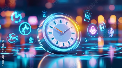 futuristic clock, time management, digital interface - cyberpunk ae.