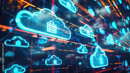 Futuristic Cloud Computing Concept with Luminous Cloud Icon in a Data Stream Tunnel