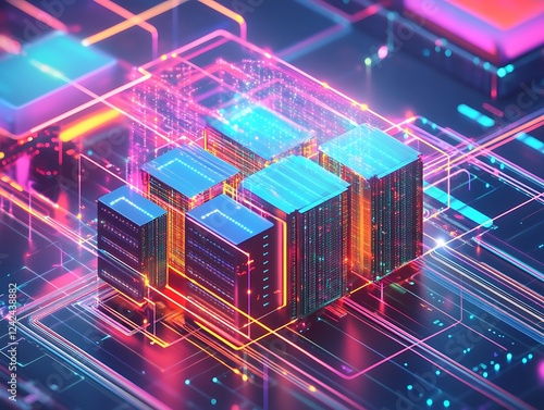Futuristic Cloud Computing Concept with Neon-Glowing Server Racks, Data Streams, and Digital Connections Representing Modern Cloud Storage and Networking