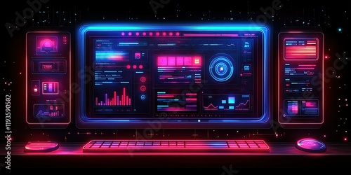 Futuristic computer interface displaying colorful data visualizations and graphs at night in a digital environment
