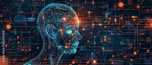 Futuristic concept of AI. Digital brain with connected nodes and circuitry showcases advanced artificial intelligence and innovative technology.