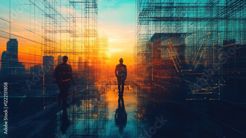 Futuristic Construction Site Incorporating Advanced Home Security Features