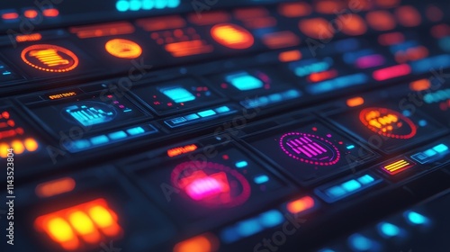 Futuristic Control Panel with Animated Digital User Interface Elements