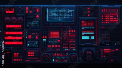Futuristic Control Panel with Neon Lights and Complex Interfaces